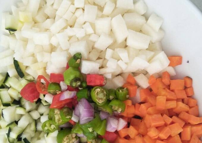Pembuatan Acar (wortel, bengkuang, timun) sebetulnya serupa dengan pembuatan Acar (wortel, bengkuang, timun) pada umumnya. Namun perbedaan dari Acar (wortel, bengkuang, timun) terdapat terhadap bahan dan cara pembuatannya. Lalu bagaimana cara membuat Acar (wortel, bengkuang, timun) ? Cara menyiapkannya memang tidak terlalu sulit namun tidak gampang juga. Kalau keliru mengolah maka hasilnya tidak akan memuaskan dan bahkan tidak sedap. Padahal Acar (wortel, bengkuang, timun) yang enak harusnya sih punya aroma dan cita rasa yang bisa menggugah selera kita.