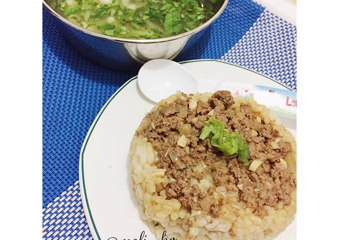 Langkah Mudah untuk Menyiapkan Nasi Tim Daging Kuah Pokchoy (MPASI 1y+) Anti Gagal