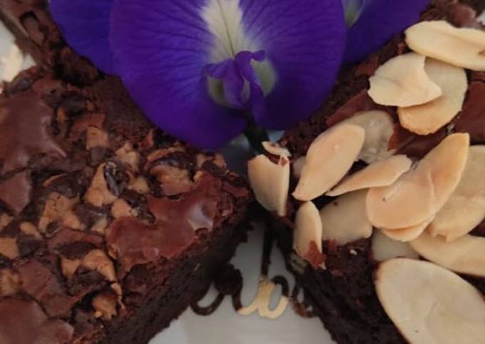 - Matangnya brownies bisa dilihat bila lapisan atas telah kering dan almond kuning kecoklatan (untuk yang senang brownies fudgy and moist), bila suka yang agak kering bisa dioven lebih lama....biarkan dingin agar lebih padat dan siap dinikmati.
